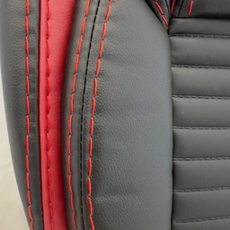 روکش صندلی جلوه حضرتی طرح لاماری چرم مشکی تیکه کنار قرمز مناسب پژو ۲۰۶